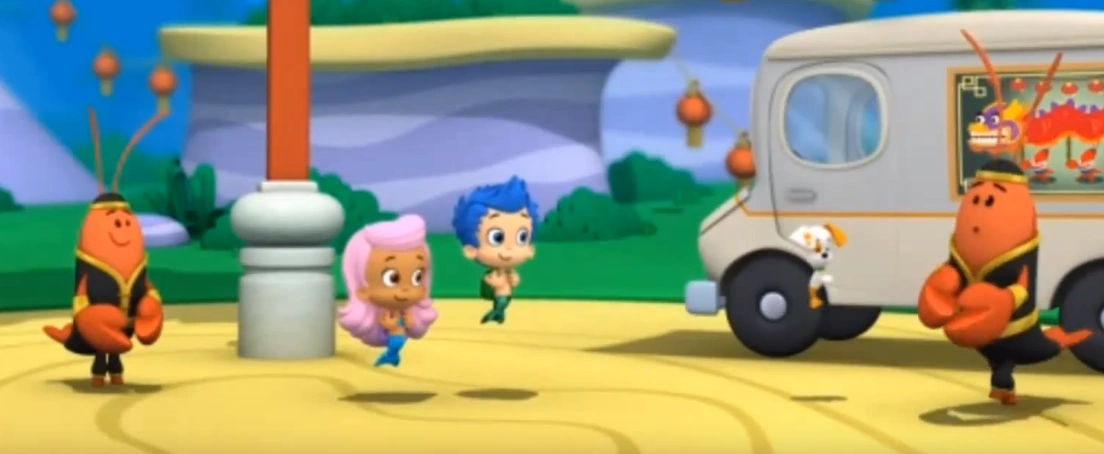 When there were not enough dancers for the Dragon Dance, Ming began to panic. Deema asked what's wrong, and he tells her they need six people for the dance. Deema then says that the Guppies can do it, since they are six people and are 'the best swishers and swooshers this side of Bubbletucky. The Guppies then do the New Year's Dragon Dance.