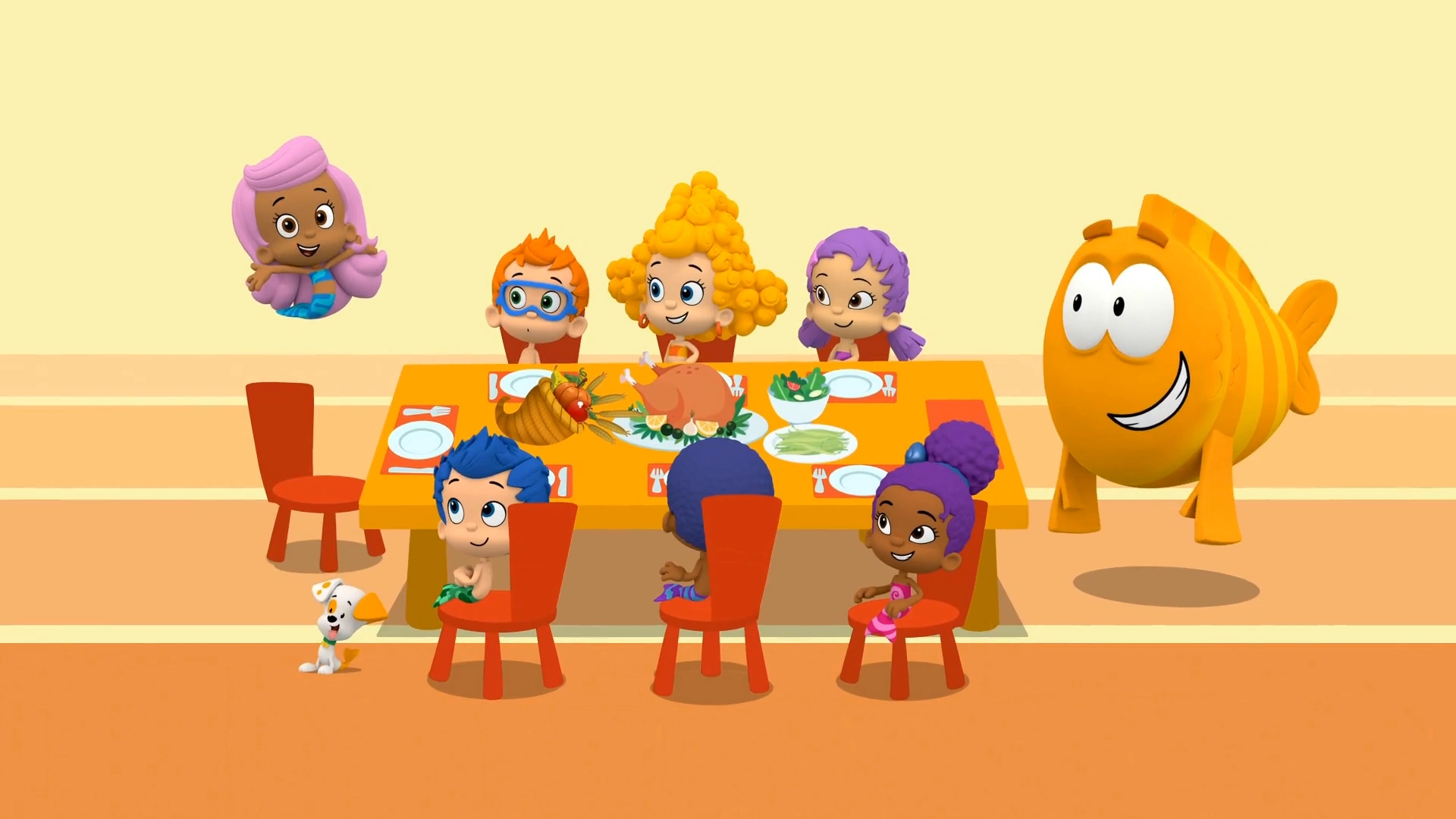 "This Harvest Day (Food Groups)" is a pop song from the episode A Giant Harvest Day! where the guppies sing about different kinds of food like fruits, vegetables, dairy, grains and protein.