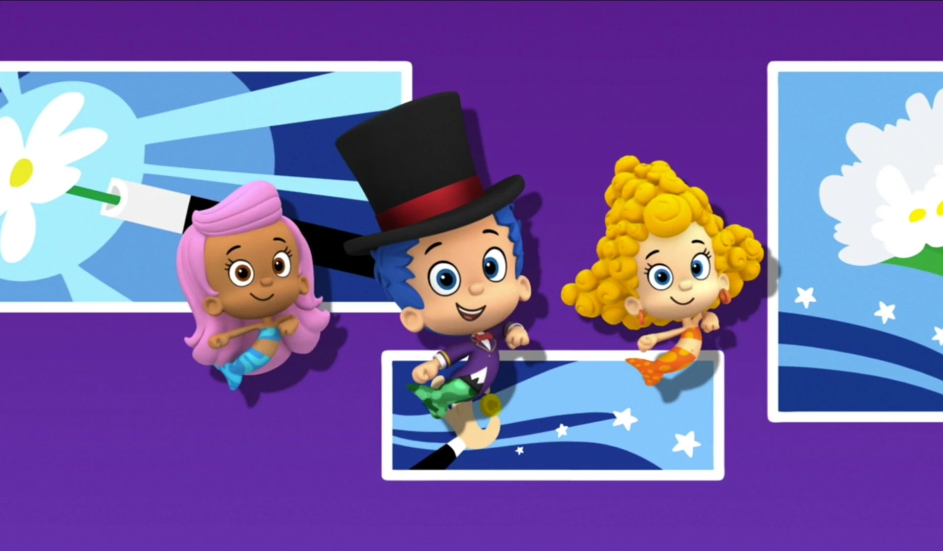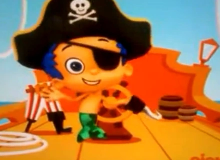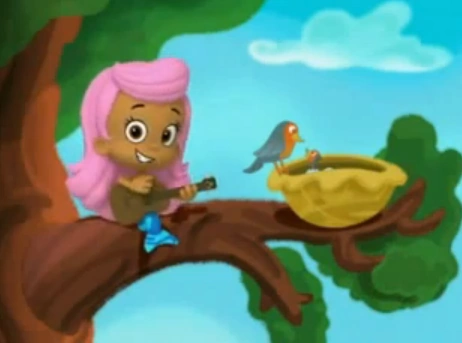 Gil is the silly leader of the Bubble Guppies, alongside Molly. He's quite messy and often finds himself struck by lightning or just having bad luck. Gil is very silly, especially during the sketches before the guppies are shown playing or talking after lunch. He's constantly being chased by animals, objects, and even planets! Gil is a (usually) brave, not very cautious male guppy; he never overthinks anything and just goes with the flow. He also loves to play music, including singing and dancing. He tends not to do so well under pressure, as seen in the "Mr. Grumpfish Special!". He sometimes also gets startled very easily.