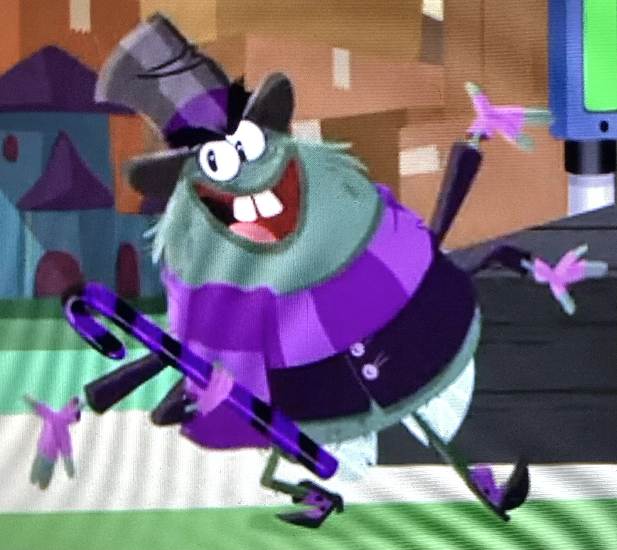 Reason: In The Grumpfish Special, he turns people into pickles. In Fruit Camp, he wants to turn all fruits rotten.