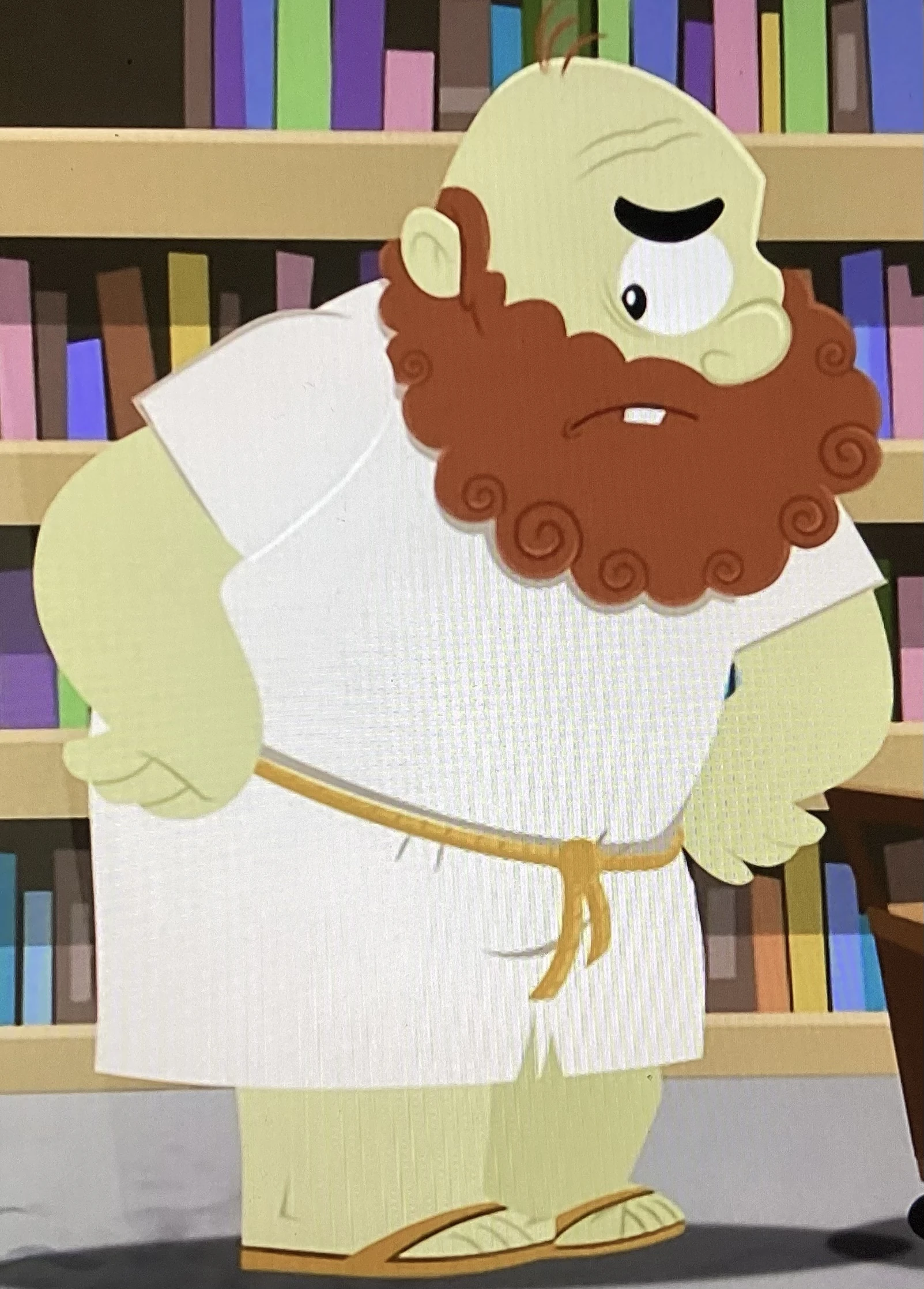 Reason: In Super Shrimptennial Celebration, he asks if Gil and Oona wanted some pretzels. In The Glitter Games, he shouts out “Yummy!” if he wants some pretzels. In Too Bright for Movie Night, he helps teach Molly, Goby, and Nonny about an eclipse.