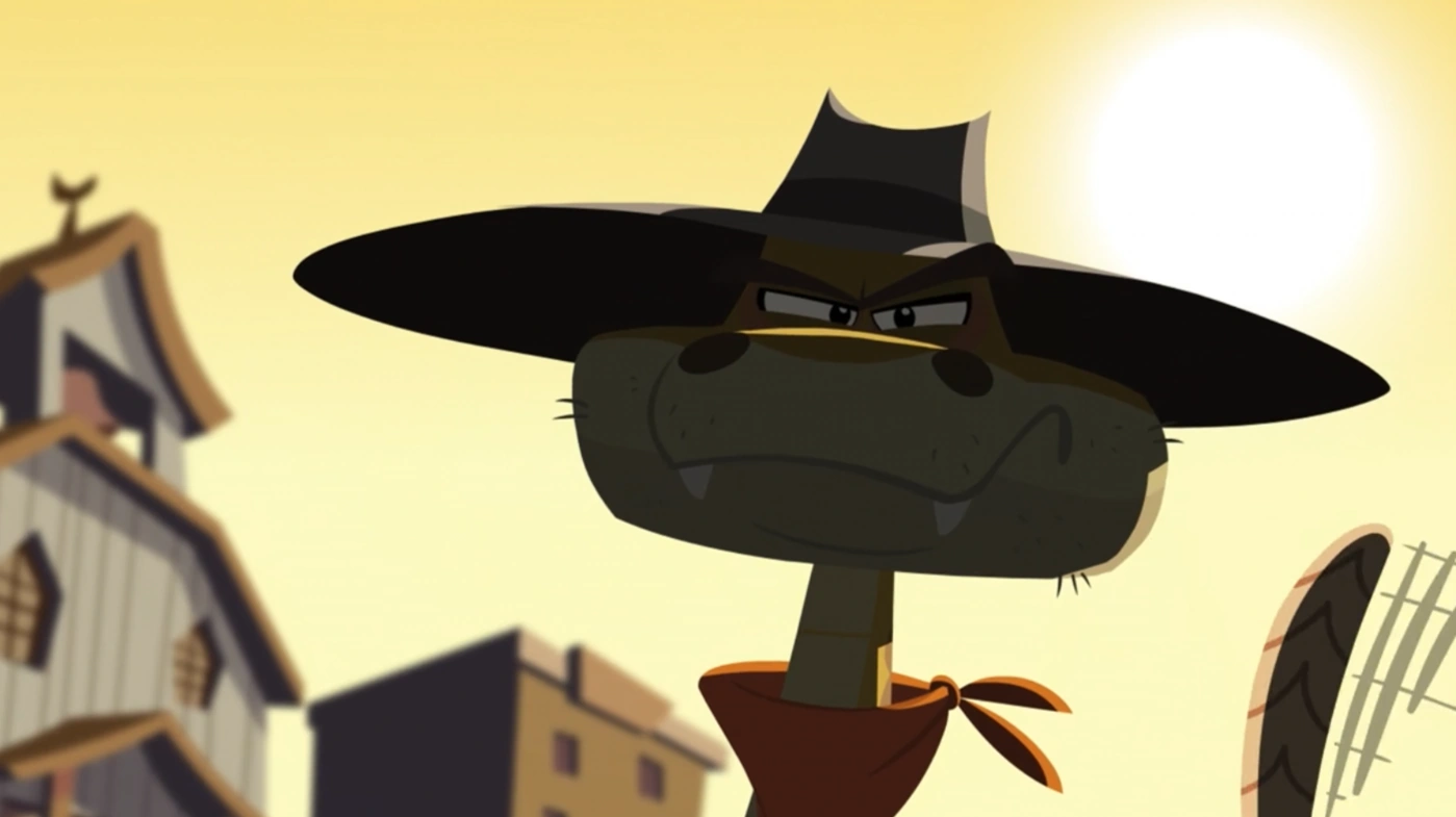 In an old western town, the Rattler is featured on a wanted poster and makes his first appearance hiding behind a barrel. Molly and Oona unknowingly drive away from him. During a second attempt to get lemonade from them, he disguises himself as an old lady but fails when he unexpectedly rattles. During the chase, he appears briefly behind a cactus, then pursues the two girls by rolling under another barrel. Later, during a staring contest with Molly, his final attempt to get a drink, a bead of sweat appears on his face, and he bursts into tears. As Molly and Oona try to comfort him, he confesses that his rattle has made him feared, preventing him from simply communicating. They apologize for running away and offer him a cup of cold lemonade at their stand.