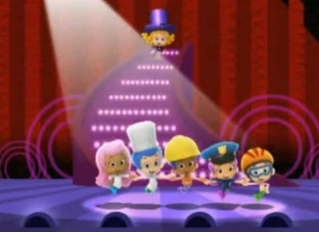 Molly watches a couple of fish pretend to be cars, zooming past as she tries to announce, "It's time for Bubble Guppies!" Suddenly, Gil, dressed as a police officer, appears and blows his whistle, bringing the fish to a halt. This gives Molly the perfect opportunity to shout, "It's time for Bubble Guppies!"