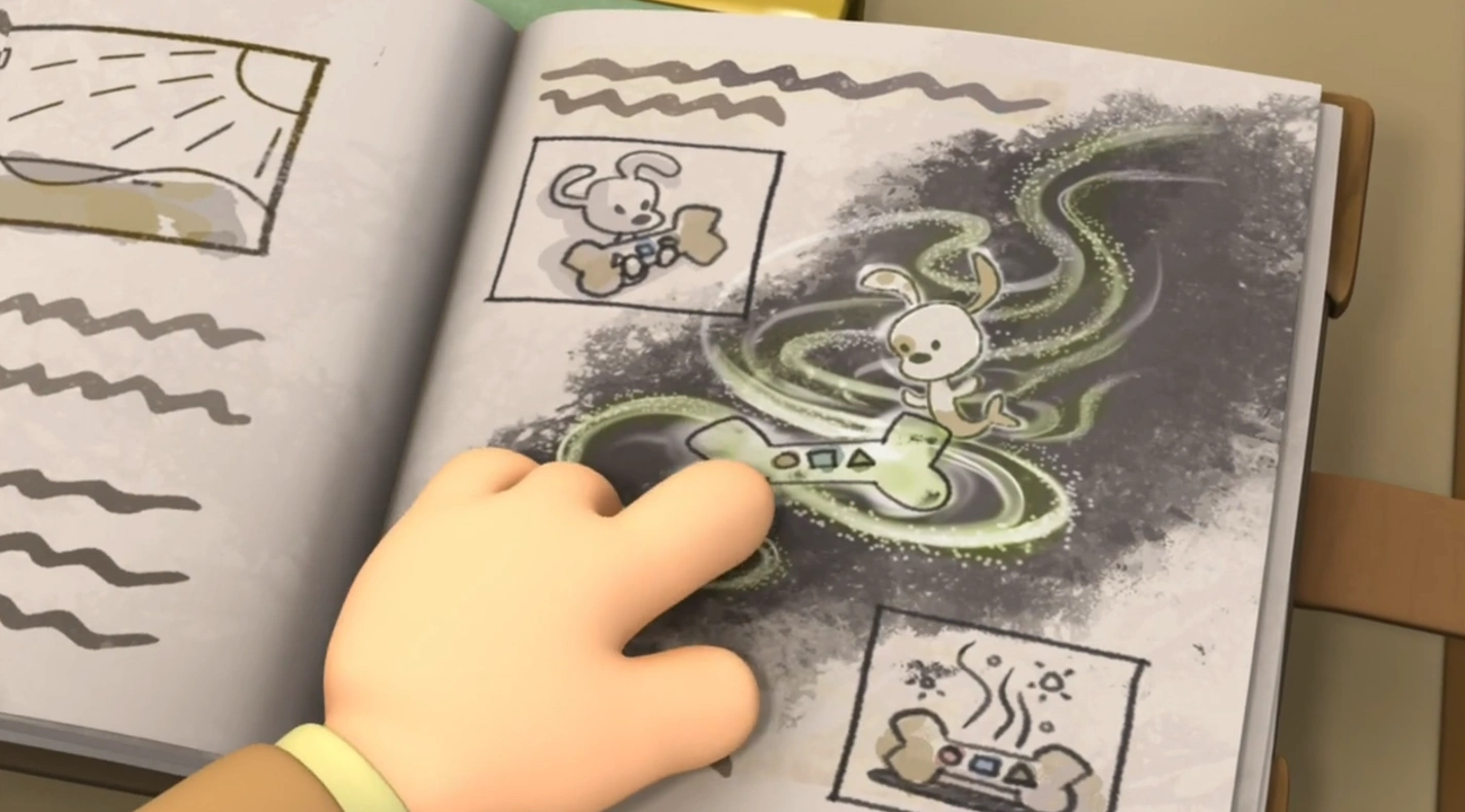 Molly and Gil go to Professor Nonny for help, taking the bone with them. Nonny identifies the artefact as 'The Bone of Machu Pecchu', a magical bone which teleports any dog that touches it to The Temple of the Lost Puppy. Nonny notices three different shaped spaces in the bone where jewels should be and, when these jewels are returned, the way to the temple will be revealed. Nonny already has the first jewel- a ruby- and places it into the bone, revealing an image of a temple in Japan. With no time to waste, they rush out to find Bubble Puppy.