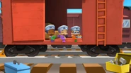 Trackaronie and Cheese is the lunch joke from the episode: Triple-Track- Train Race! Nonny is the victim of this lunch joke. The setting of this scene is a box car in a train yard.