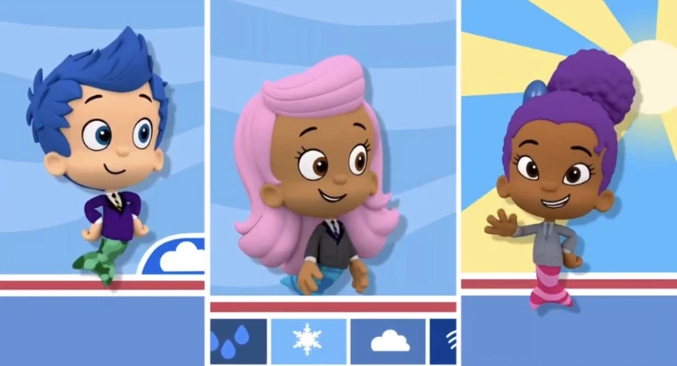 In the song, Molly, Gil, Zooli and the other guppies talk about the weather.